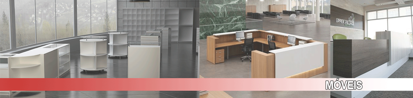 Balcão caixa L com detalhe amadeirado ..